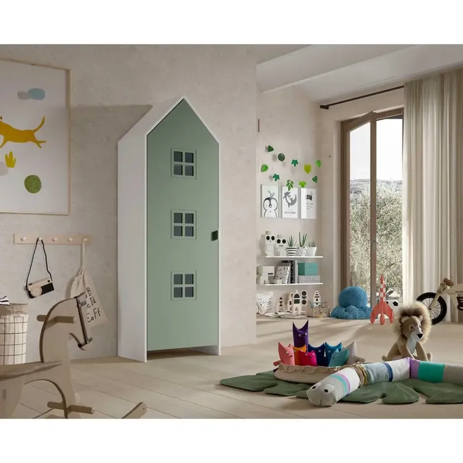 Haal een speelse sfeer in de kinderkamer met de kledingkast Casami Bruges. Voor het design van de kledingkast inspireerde de fabrikant zich op de typische Brugse rijhuizen. Hierdoor krijgt de kast een speelse en kleurrijke toets, wat het uitermate geschikt maakt voor een kinderkamer. Achter de deur is de kast uitgerust met drie legplanken en een kledingroede. De kasten Casami zijn beschikbaar in verschillende uitvoeringen en kleuren. Kies jouw favoriet of combineer ze voor een speelse look.