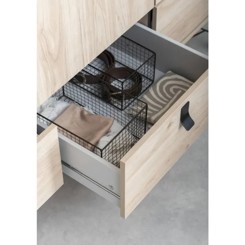De Kansas is een handige kast door zijn fijne indeling. De ene helft van de kast kan gebruikt worden voor op te hangen kleding, terwijl in het andere deel van de kast kleding opgevouwen weggelegd kan worden.