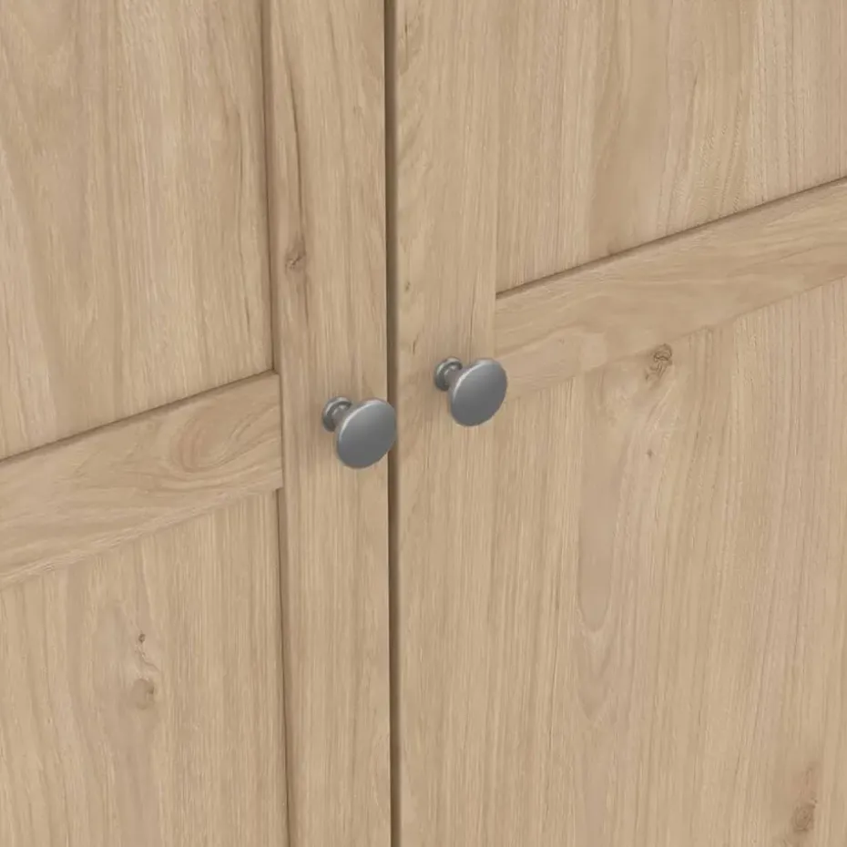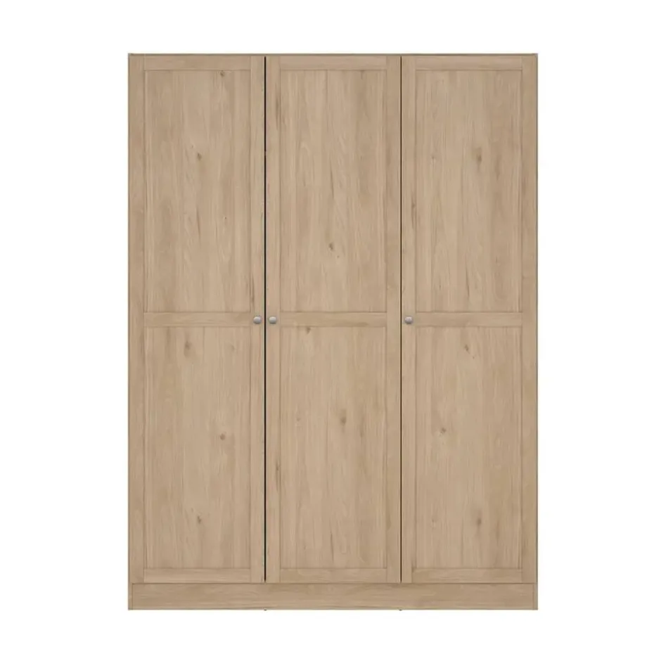 Kledingkast Lynn is een mooie en handige kledingkast in een eikenkleur. De strakke en moderne kader lijsten op de deuren zorgen ervoor dat de kast een mooie toevoeging is aan de slaapkamer, logeerkamer of kledingkamer.