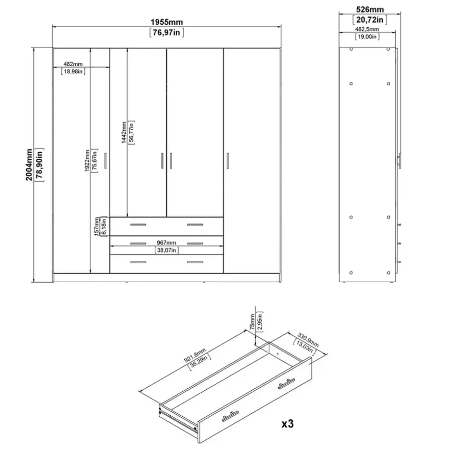 Deze tijdloze witte kledingkast Sprint heeft een moderne vormgeving. Kledingkast Sprint heeft 4 deuren en 3 ruime laden en biedt hierdoor voldoende opbergruimte voor al je kleding! De kast heeft een totale afmeting van: 200x196x50 cm.