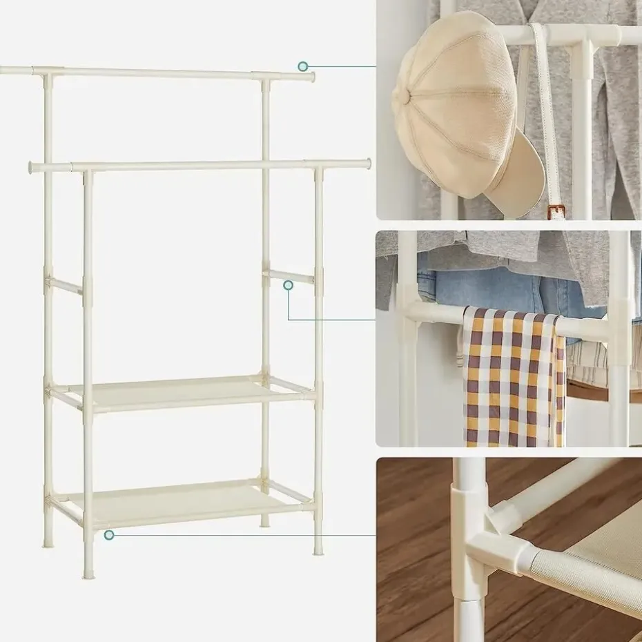 - Inhoud levering: Een kledingrek met 2 stangen, die orde in je huis brengt. Er zitten ook gedetailleerde instructies en genummerde onderdelen bij om de montage te vergemakkelijken.