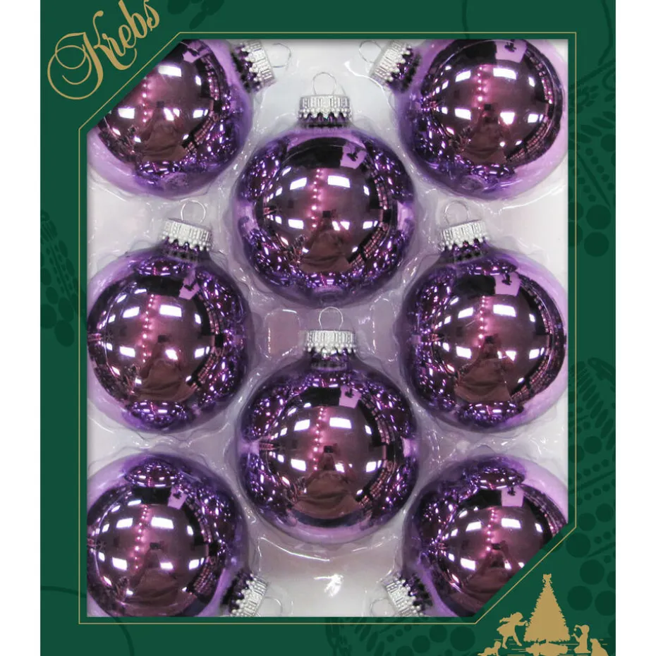 8x stuks glazen kerstballen 7 cm amethist paars glans kerstboomversiering.