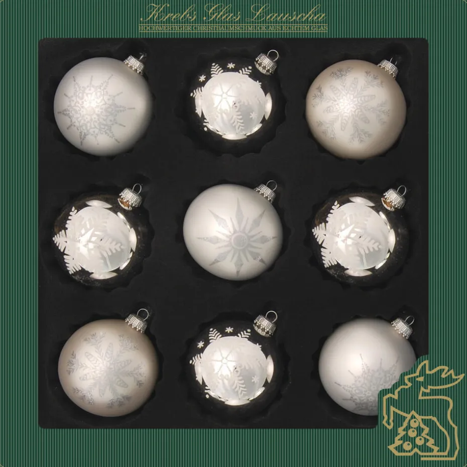 9x stuks luxe gedecoreerde glazen kerstballen zilver 8 cm. Verpakking met handgemaakte en mond geblazen kerstballen van glas. Wij adviseren u om kerstbalhaakjes mee te bestellen (niet inbegrepen).