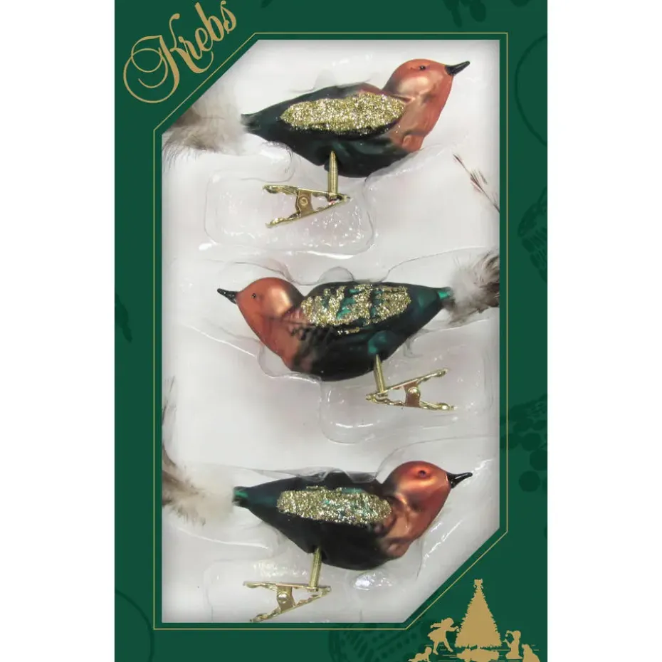 3x stuks luxe glazen decoratie vogels op clip groen/bruin 11 cm. Deze decoratievogeltjes kunt u ergens aan vast klippen ter decoratie. Bijvoorbeeld aan een tak of in de kerstboom. Vogeltjes op clips kerstboomversiering/kerstdecoratie.
