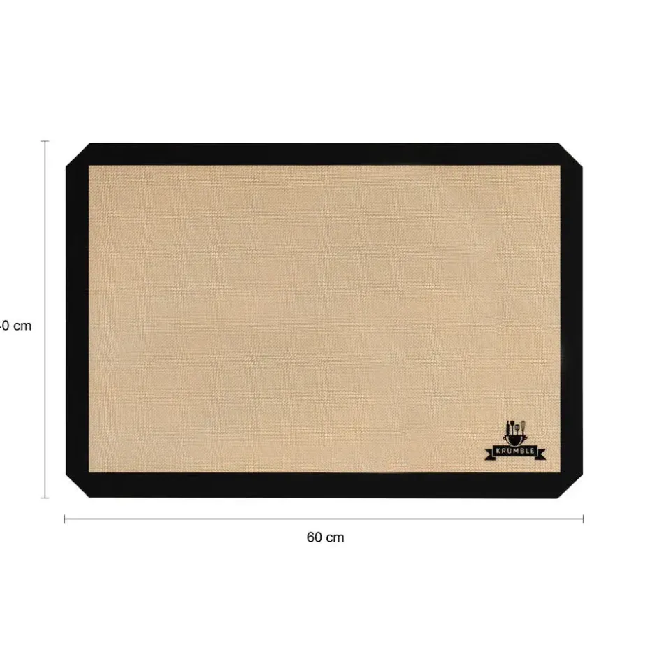 De siliconen bakmat van Krumble is bestand tegen hoge temperaturen tot minimaal 250 graden Celsius, waardoor je ‘m veilig kunt gebruiken voor allerlei ovenrecepten. Let op: de mat is niet geschikt om op te snijden met een mes. Gebruik de mat voor voorbereiding, bakken en bescherming, maar snijd je ingrediënten altijd op een snijplank.