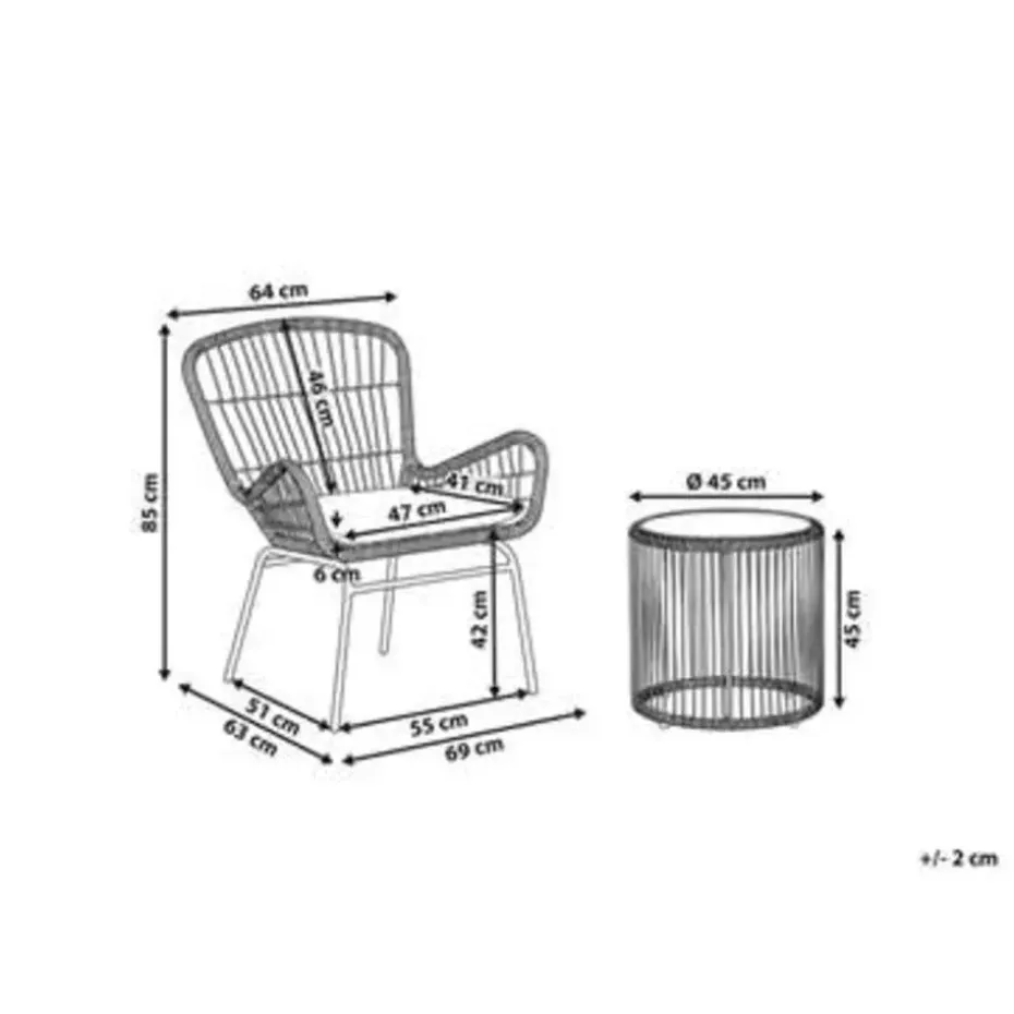 Aanbod omvat: 1 x Salontafel, 2 x Stoel, 2 x Zitkussen