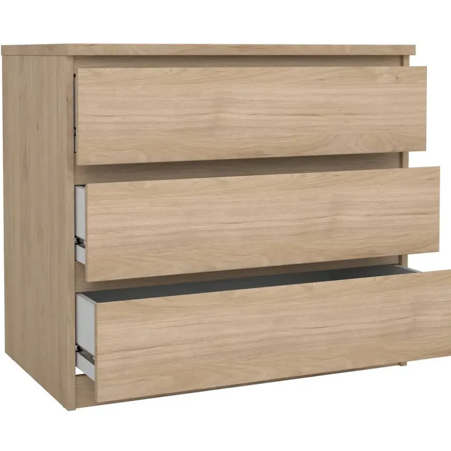 Op zoek naar een handige ladekast voor op de werk- of slaapkamer? Ladekast Naia met 3 laden is een handige opbergkast in eikenkleur. Gebruik hem bijvoorbeeld als extra opberger naast je bureau of in de slaapkamer omkleding in op te bergen. De Naia kasten zijn verkrijgbaar in diverse uitvoeringen. Dit meubel is gemaakt van spaanplaat.