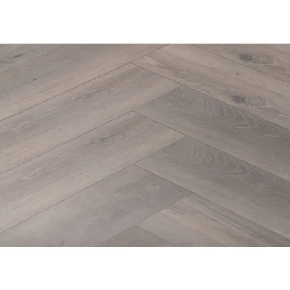 Laminaat Herringbone is een landelijk romantisch laminaat in de kleur donker eiken. Laminaat heeft veel voordelen. Het is heel gemakkelijk te leggen, vergt weinig onderhoud en laminaat is vele malen voordeliger dan een houten vloer. Deze laminaatvloer is te leggen in een visgraat dessin waardoor je veel charme en karakter toevoegt in je ruimte.
