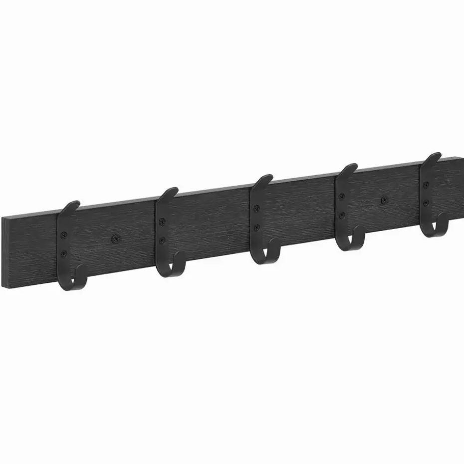 Dankzij de zwarte plank en de mat zwarte haken heeft deze lange kapstok een strak design.