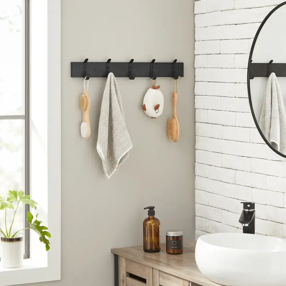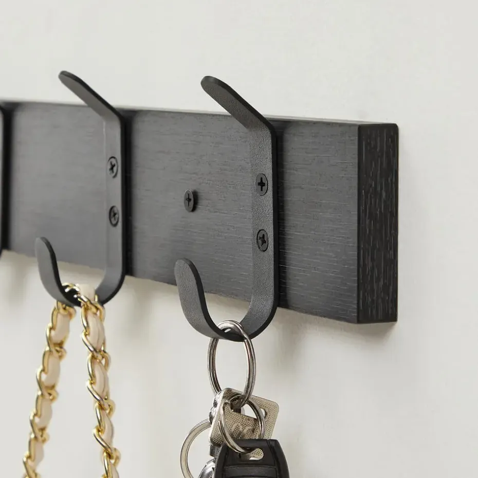De haken zijn slim geplaatst zodat u 2 van deze kapstokken naast elkaar kan monteren. U kan deze wandkapstok eveneens combineren met de variant met 6 of 16 haken.