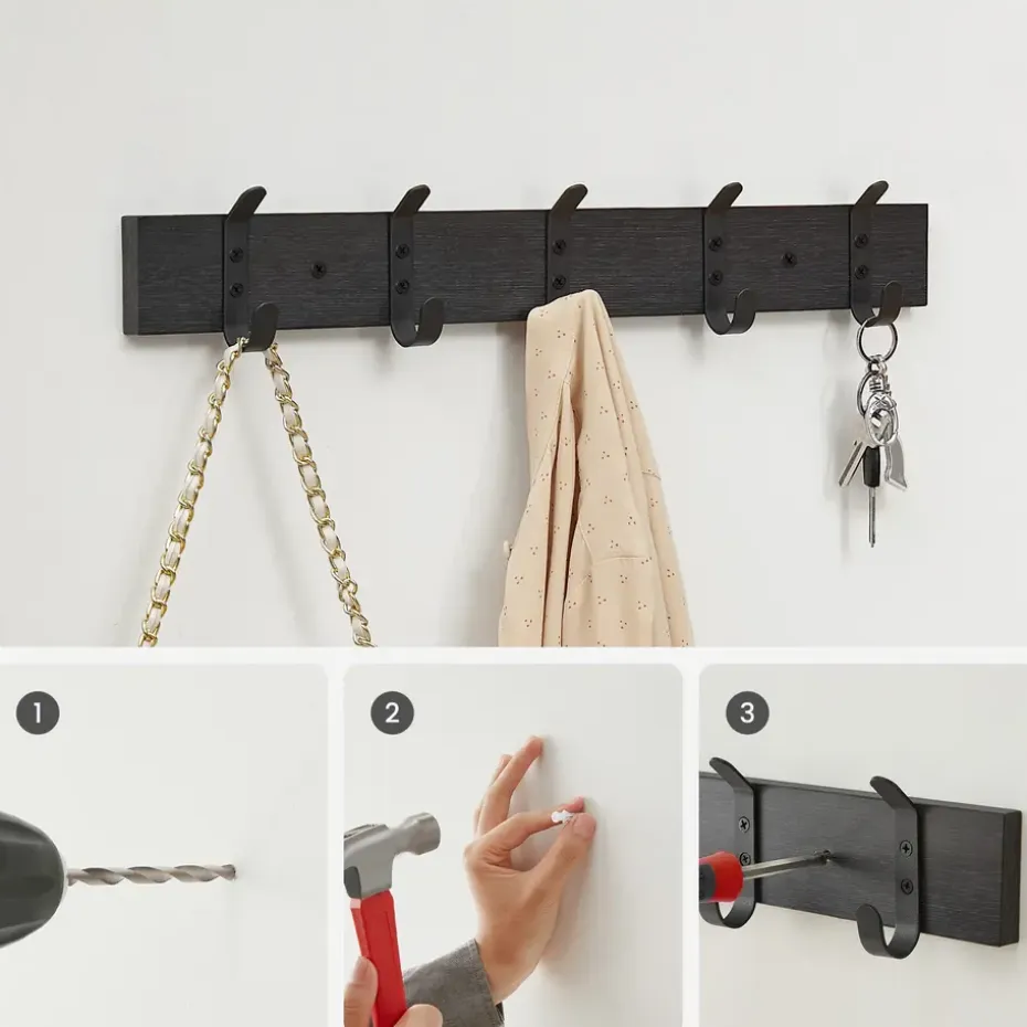 Zorg voor een opgeruimd huis of appartement! Aan deze kapstok kan je jouw jassen, t-shirts, rugzak, … hangen. Deze compacte wandkapstok is ideaal als u niet veel plaats hebt in uw inkomhal, keuken of slaapkamer.