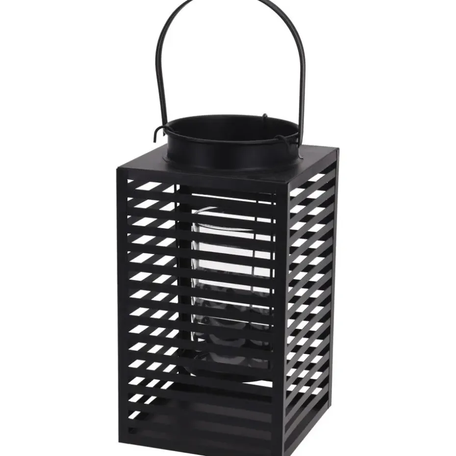 Metalen lantaarn/windlicht kaarshouder mat zwart 12 x 24,5 cm. Geschikt voor grote waxinelichten, stompkaarsen en bolkaarsen. Met handvat en glazen cilinder/kaarshouder in het midden. Geschikt voor binnen gebruik. Afmeting: 12 x 12 x 24,5 cm, met handvat omhoog ca. 30 cm hoog. Materiaal: metaal met glas. Gewicht: ca. 800 gram. Wordt geleverd excl. kaarsen.
