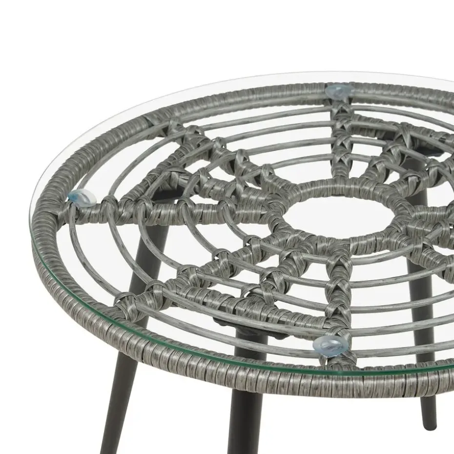 Belangrijkste eigenschappen: Het tafelblad is met zuignapjes bevestigd. Het handgemaakte vlechtwerk benadrukt het unieke karakter, Hoogwaardig materiaal, UV-bestendigheidsklasse 3 (ISO 105-B02), Verwijderbare kussenhoezen, Robuust tafelblad gemaakt van veiligheidsglas