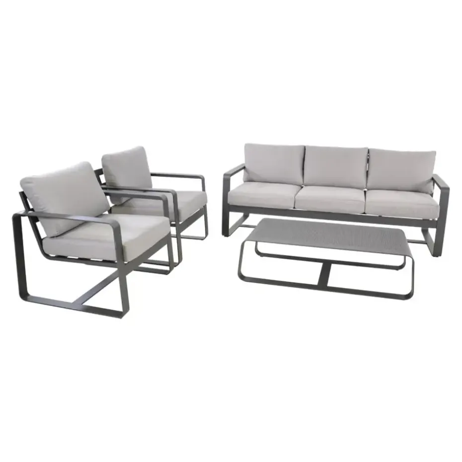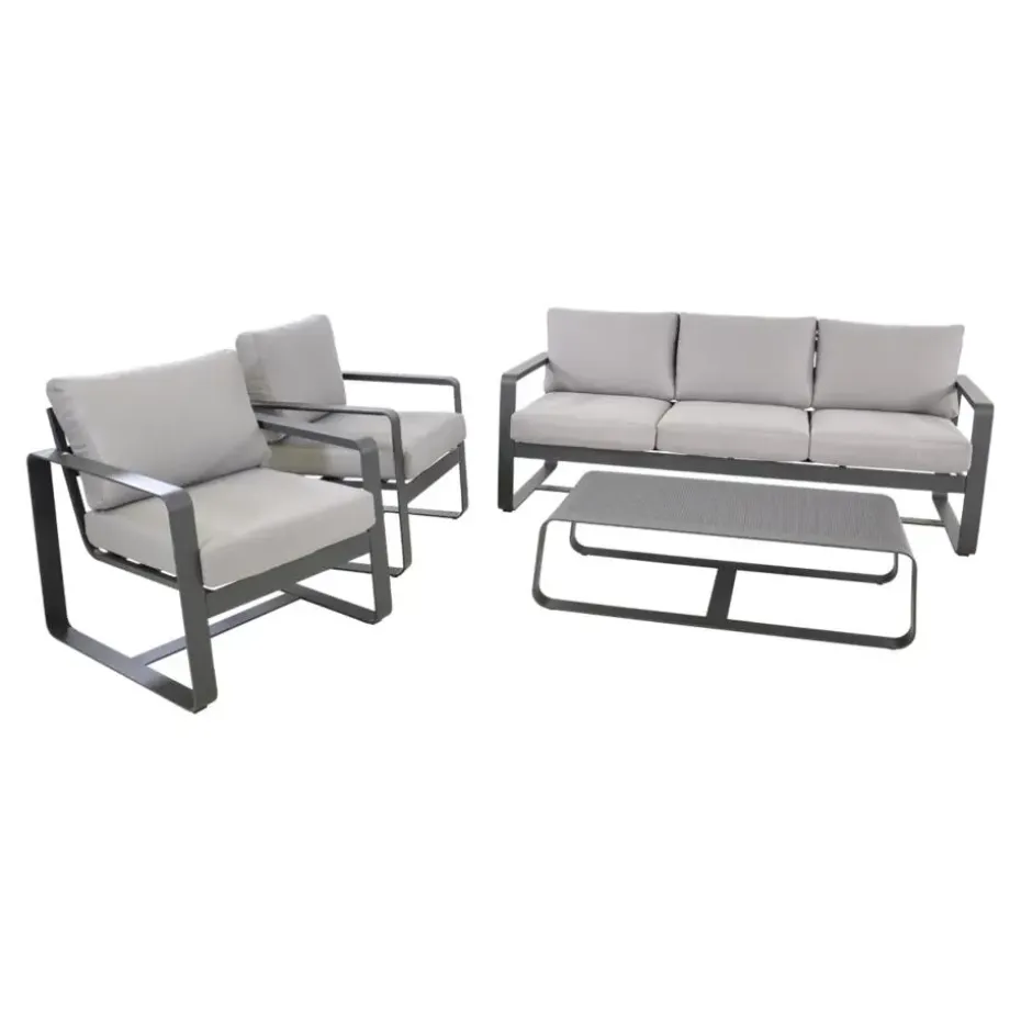 De Loungeset Belezza van het woonmerk Les straalt moderne elegantie uit met zijn lichtgrijze tint en strakke lijnen. Deze set is ontworpen met oog voor detail en comfort, waardoor het een ideale keuze is voor iedereen die zijn buitenruimte wil upgraden. De Belezza-set bestaat uit een combinatie van banken en tafels, waardoor een uitnodigende en flexibele loungeomgeving ontstaat. Het lichtgrijze kleurenschema voegt een fris en hedendaags element toe aan jouw tuin, terwijl het tegelijkertijd een kalmerend effect heeft.