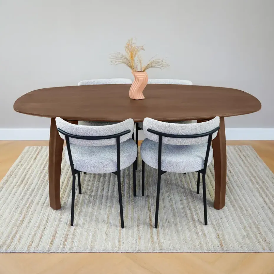 De Lewis & Loft Luna eettafel, met zijn unieke Deens ovale vorm, brengt een moderne twist in je eetkamer. Deze eettafel deens ovaal onderscheidt zich door het strakke, bruine tafelblad van mangohout, dat zorgt voor een natuurlijke en sfeervolle uitstraling. Het ontwerp van deze eettafel past perfect bij verschillende interieurstijlen, of je nu gaat voor Scandinavisch, industrieel, of modern.