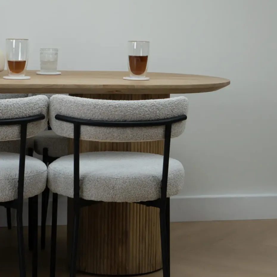 De natuurlijke, warme uitstraling van het mangohout, gecombineerd met de zachte ovale vorm en de stijlvolle ronde poten, zorgt ervoor dat deze tafel moeiteloos past binnen diverse interieurstijlen. Van modern tot rustiek, de ovale eettafel versterkt de sfeer van uw ruimte en vormt een centraal punt in elke eetkamer.