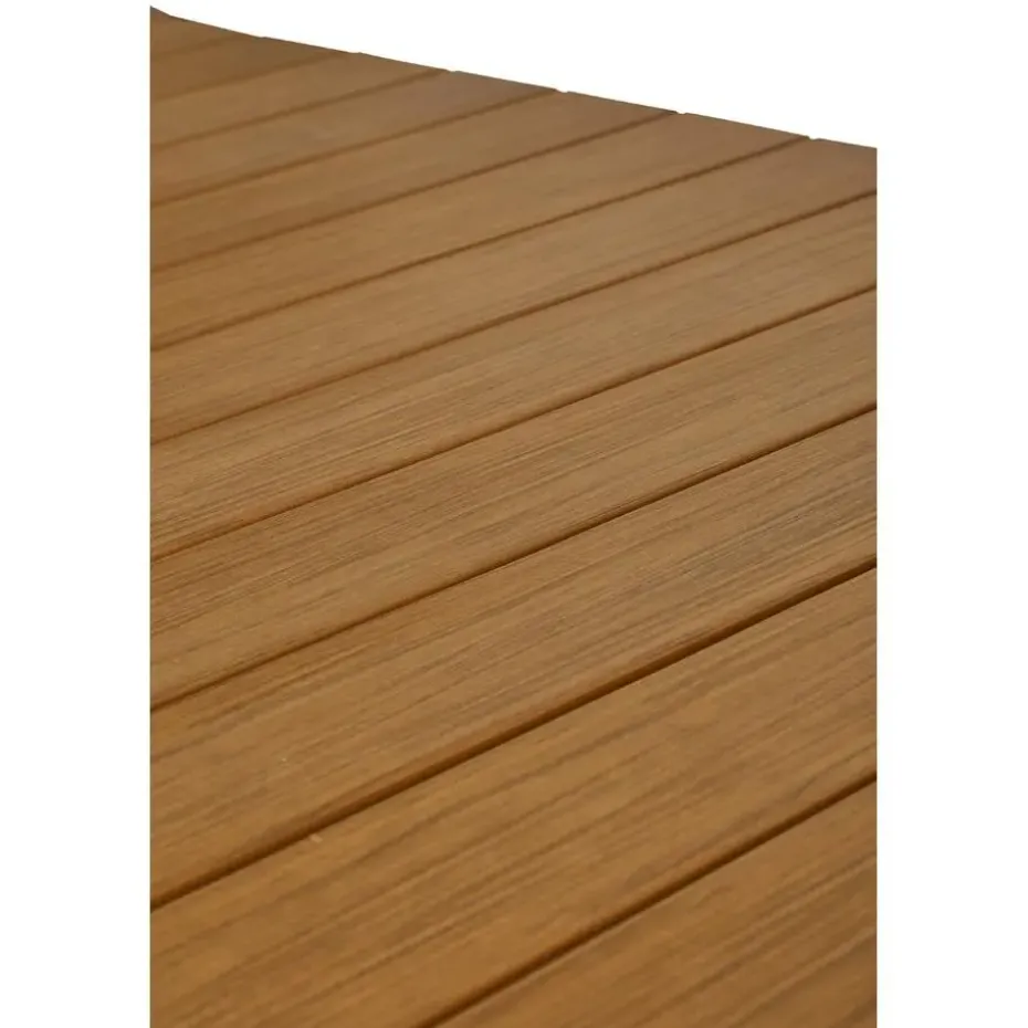 Schuif de tafel uit als je mensen over de vloer hebt, en klap de tafel weer in zodra je iets meer ruimte op het terras wil. De Stef tuintafel heeft een frame van zwart gepoedercoat aluminium en een tafelblad gemaakt van polywood latjes. Polywood is een duurzame kunststof maar heeft de uitstraling van hout, waardoor je een mooie houtlook tafel hebt. De onderkant van het tafelblad is 67 centimeter hoog. Het verlengstuk van de tafel heeft een lengte van 69,5 centimeter waardoor de tafel tot 275 centimeter te verlengen is. Door het uitschuifbare frame kan het verlengstuk aan het uiteinde van de tafel worden bevestigd. Let op: laat glazen niet te lang in de zon staan op een polywood tafel. Hierdoor kan een vergrootglaseffect optreden waardoor er smeltplekken ontstaan op het tafelblad. Ook hete voorwerpen zoals pannen kunnen niet direct op het tafelblad worden geplaatst.