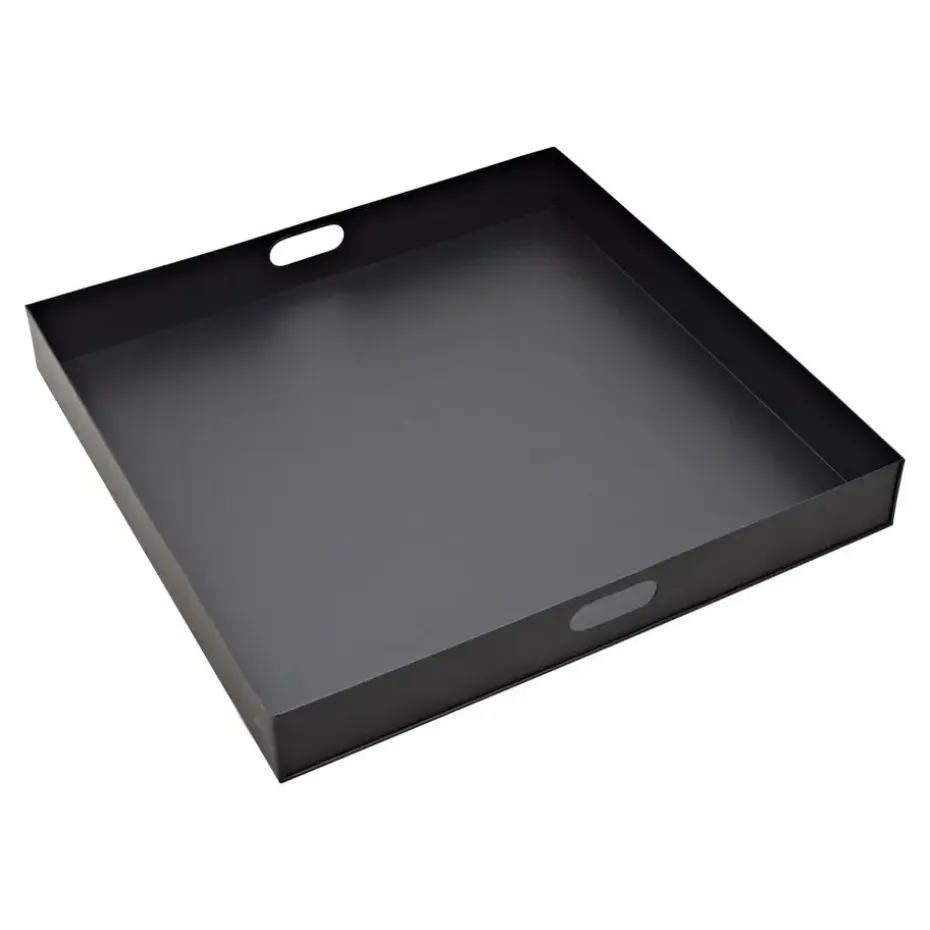 Het LOFT42 Tray Metalen Dienblad is een groot vierkant dienblad en gemaakt vanstevig metaal met een mat zwart poedercoating als afwerking. De gave mat zwarte kleur, maakt het dienblad tot een extra stoer woonaccessoire. In de opstaande rand,zijn twee uitsparingen die als handvat gebruikt kunnen worden.
