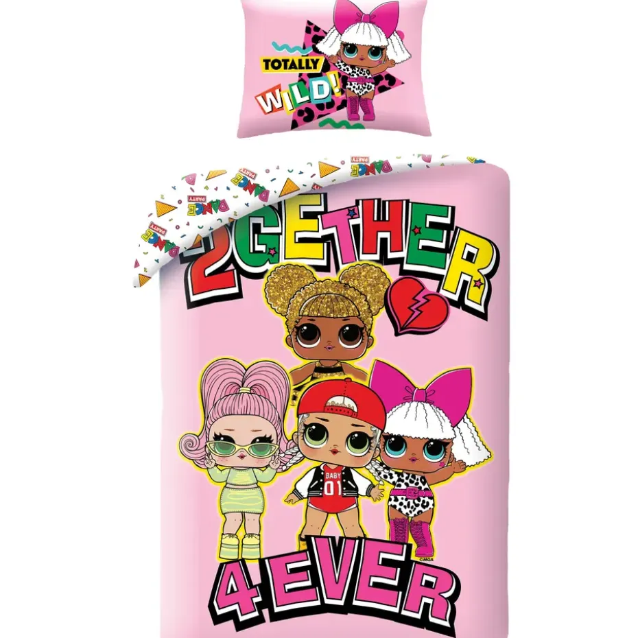 LOL Surprise! Dekbedovertrek, 2gether 4ever. Vrolijk, katoenen dekbedovertrek van de geweldige L.O.L. Suprise! poppen. Deze meiden zijn vriendinnen voor het leven! De dubbelzijdige bedrukking en het extra grote kussensloop zorgen ervoor dat jij een echte blikvanger te pakken hebt voor je slaapkamer. Ken of ben jij een fan van LOL Surprise? Dan is dit ook een ideaal cadeau-idee voor een verjaardag of de feestdagen!