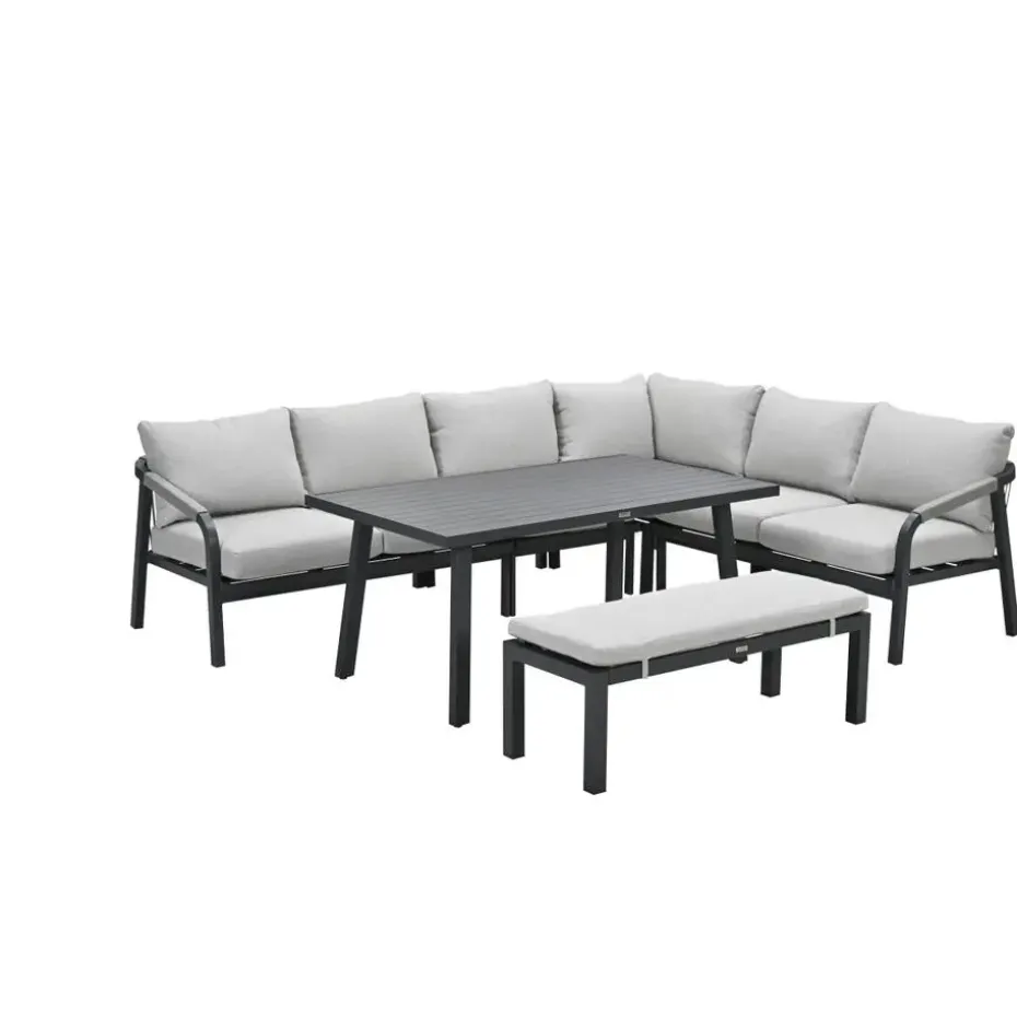 Lounge-diningset Monti – zwart – 7-persoons – aluminium – Garden Impressions