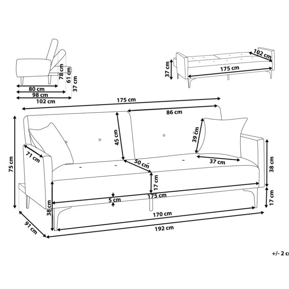 Belangrijkste eigenschappen: Zeer gemakkelijk te veranderen in een bed, Brede, dik gestoffeerd zitvlak, Traditioneel design met een moderne twist, Hoogwaardige kwaliteit stoffering, Verwijderbare kussenhoezen, Rondom bekleed en dus vrij op te stellen, Beschermdoppen voor oppervlaktebescherming
