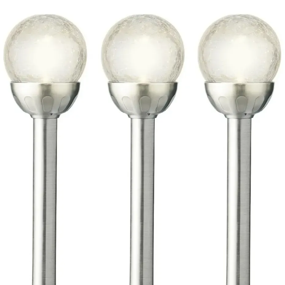 Buitenlampen/tuinlampen LED solar verlichting op zilveren steker/grondpin/grondpen. Verlicht het tuinpad/looppad of licht een plantenborder uit met meerdere van deze lampen. De lampen zijn milieuvriendelijk aangezien ze zelfvoorzienend zijn in stroom dankzij de zonnepanelen. U kunt de lamp overal plaatsen en ook weer verplaatsen omdat u geen elektriciteitsdraden hoeft te spannen.