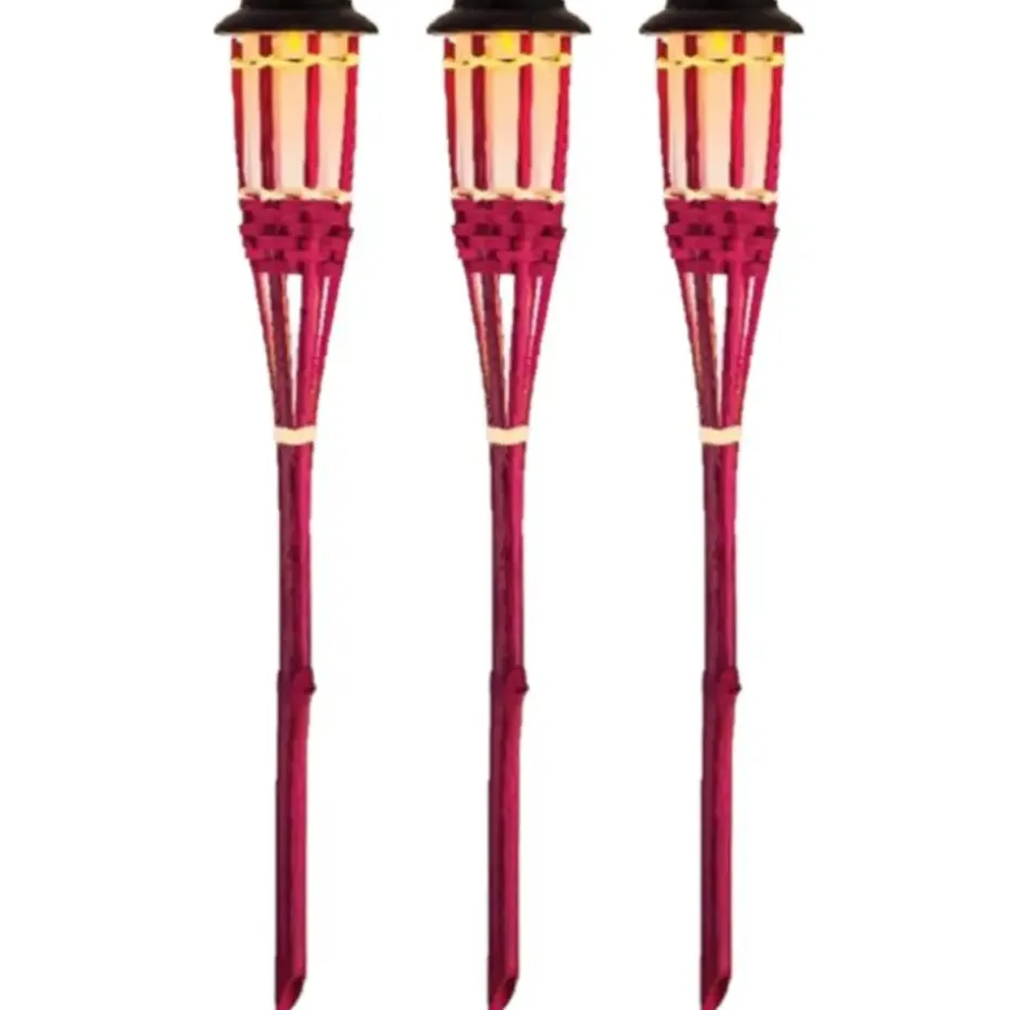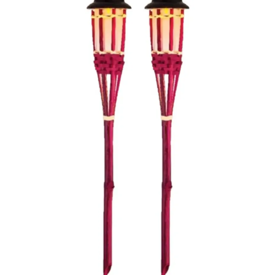 1x Roze buitenlamp/tuinlamp Led solar vlameffect verlichting op bamboe houten steker/grondpin/grondpen, type Bodi. Verlicht het tuinpad/looppad of licht een plantenborder uit met meerdere van deze lampen. De lampen zijn milieuvriendelijk aangezien ze zelfvoorzienend zijn in stroom dankzij de zonnepanelen. U kunt de lamp overal plaatsen en ook weer verplaatsen omdat u geen elektriciteitsdraden hoeft te spannen.