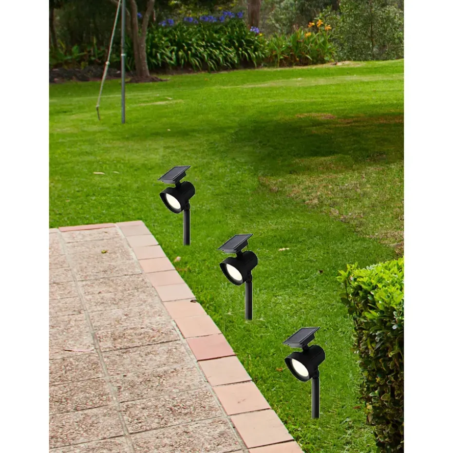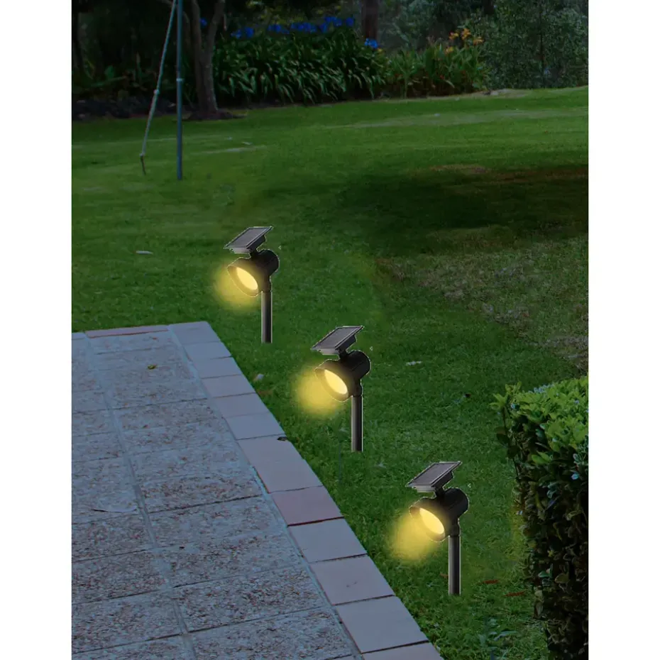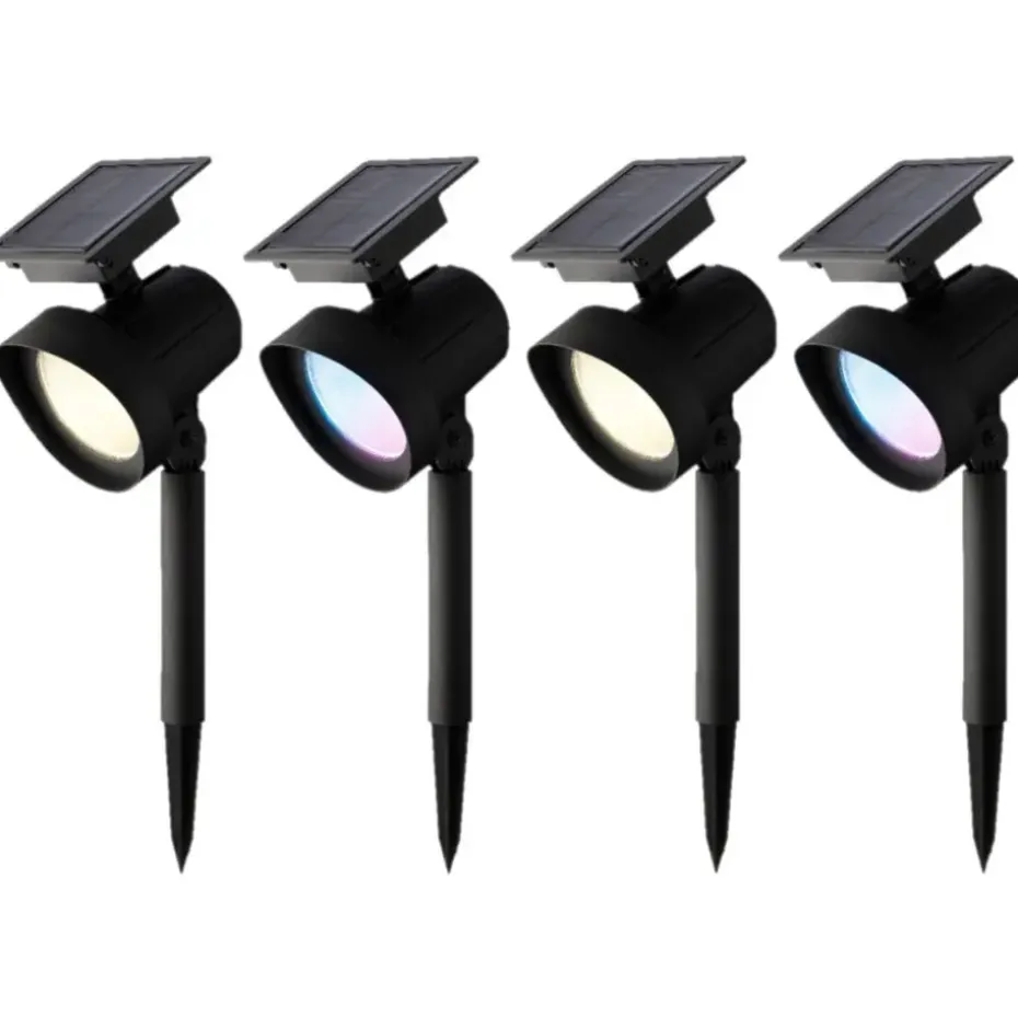 Set van 2x stuks solar spotlights, met Led verlichting in 8 verschillende kleuren voor de tuin. De lamp met kleur veranderend effect werkt op zonne-energie waardoor het zichzelf oplaadt gedurende de dag. Inclusief grondpin, zodat je ze bijvoorbeeld langs een looppad kunt zetten. Schakelaar: ja. Kleur licht: 8 kleuren. Afmeting: 31 cm. Materiaal: Kunststof. Inclusief vervangbare batterijen. Tuinlampen/tuinverlichting/prikspots op zonne-energie.