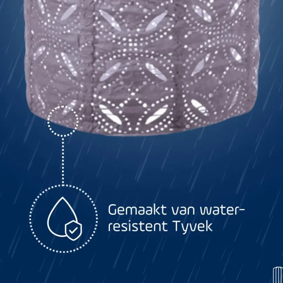 De Lumiz Solar Buitenlamp is ontworpen met zowel esthetiek als duurzaamheid in gedachten. De lampion is gemaakt van Tyvek, een sterk, weerbestendig en 100% recyclebaar materiaal dat lang meegaat. Bovendien geeft de lampion een warm LED licht dat perfect is voor het creëren van een gezellige en sfeervolle ambiance in jouw tuin.