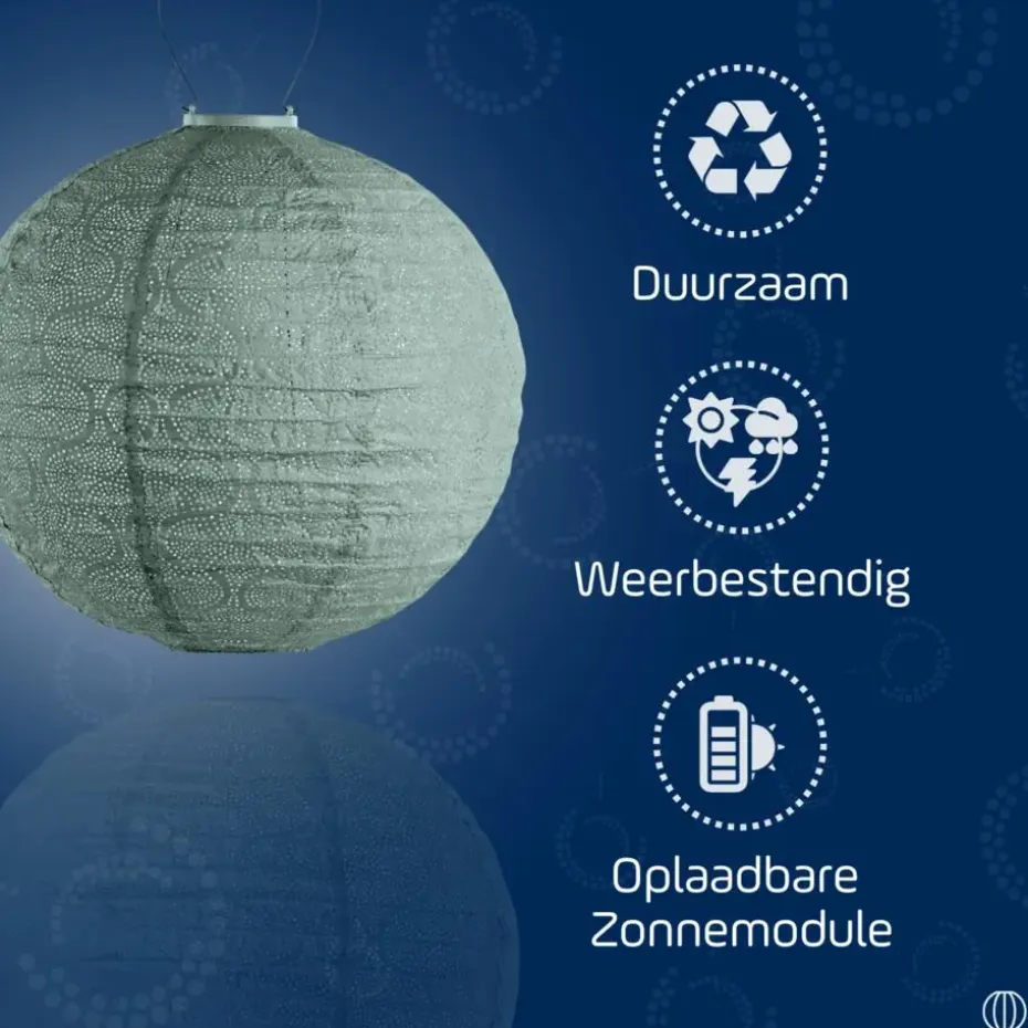 De Lumiz Solar Buitenlamp is ontworpen met zowel esthetiek als duurzaamheid in gedachten. De lampion is gemaakt van Tyvek, een sterk, weerbestendig en 100% recyclebaar materiaal dat lang meegaat. Bovendien geeft de lampion een warm LED licht dat perfect is voor het creëren van een gezellige en sfeervolle ambiance in jouw tuin.
