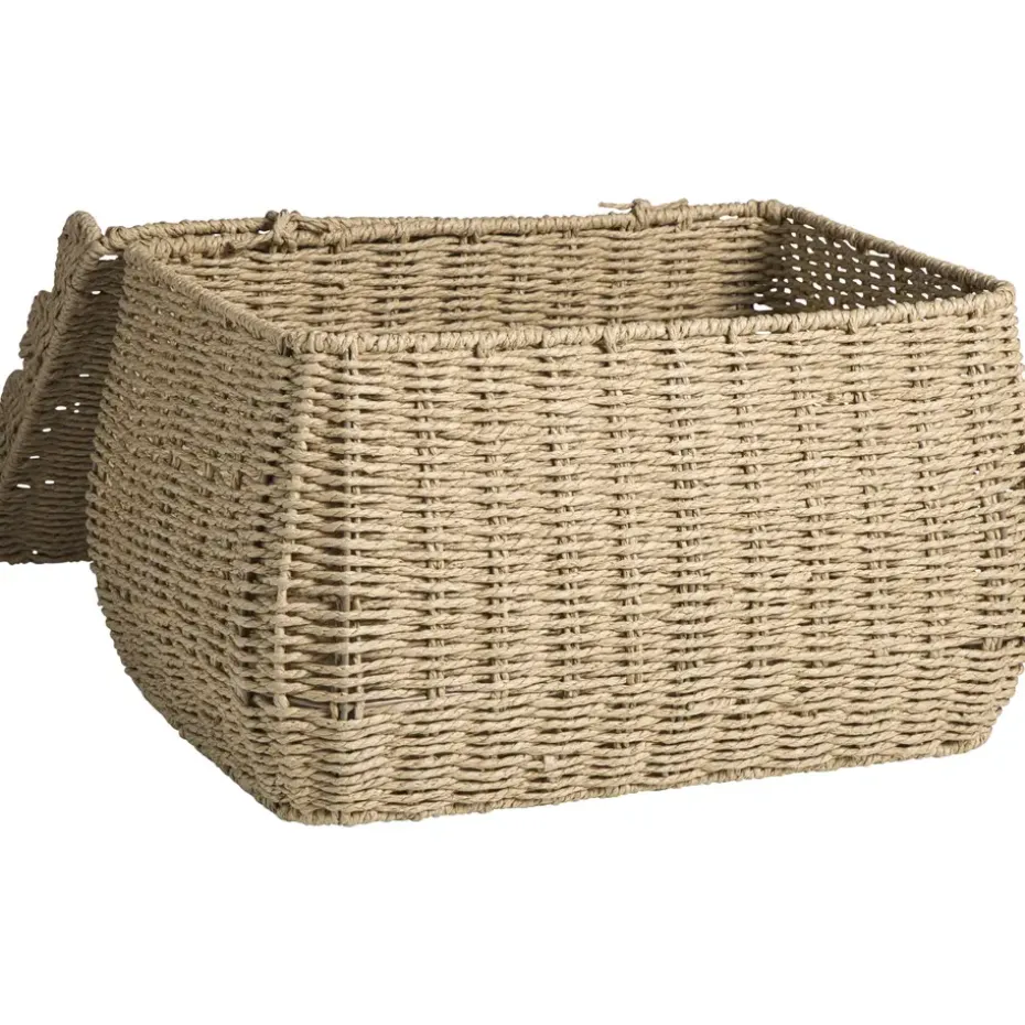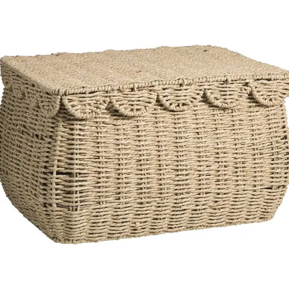 Mand Moda in naturel kleur is een prachtige en praktische opbergmand met de afmetingen 25 x 42 x 32 cm. Deze mand heeft een stijlvolle, golvende rand met meerdere bogen die een speels en verfijnd effect geven. De sierlijke cirkelvormige grepen maken het verplaatsen eenvoudig en voegen een elegant detail toe. Dankzij de bijpassende deksel blijft de inhoud netjes uit het zicht en beschermt de mand je spullen tegen stof. Door het natuurlijke materiaal en de neutrale kleur past mand Moda perfect in elk interieur, van landelijk tot modern. Ideaal voor het opbergen van dekens, tijdschriften of andere woonaccessoires, terwijl hij tegelijkertijd een mooie toevoeging is aan je woonruimte.