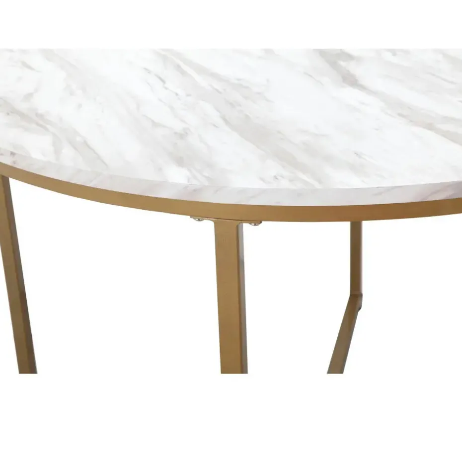 Een vleugje luxe voor je huis: dat is wat de ronde eettafel met zijn extravagante design je biedt. Dankzij de geraffineerde combinatie van materialen en decor zal deze tafel een echte blikvanger zijn in je eetkamer. Een rond marmeren blad rust op een verguld metalen frame met vier poten. Je kunt je naasten rond deze tafel verzamelen om samen te dineren en quality time met elkaar door te brengen. De oppervlakken zijn gemakkelijk schoon te maken en gemaakt van FSC®-gecertificeerd hout. Verkrijgbaar in twee maten.
