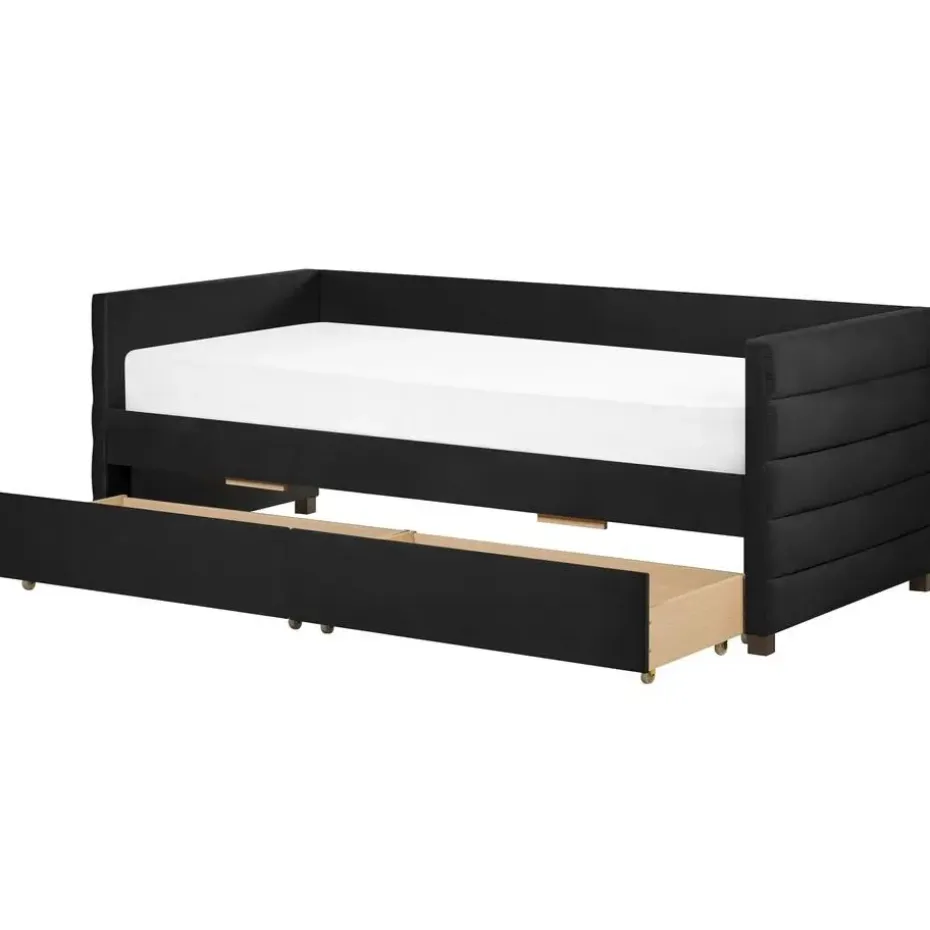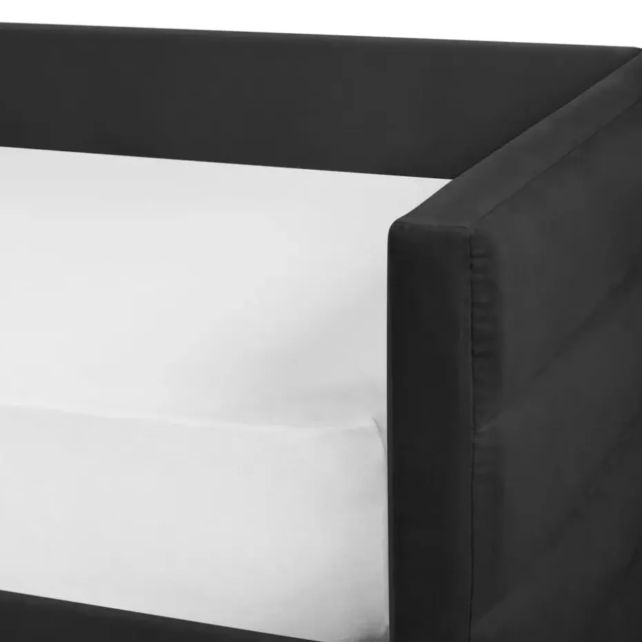 Extra informatie: Vanwege het ontwerp van het bed, raden we aan een matras te gebruiken die maximaal 20 centimeter hoog is. De kleur van het velvet oppervlak kan iets afwijken van de afbeelding. Dit kan komen door verschillende lichtsoorten of in welke richting het materiaal gestreken wordt. Om de kleur effen te maken kun je over de stof heen strijken met de hand.
