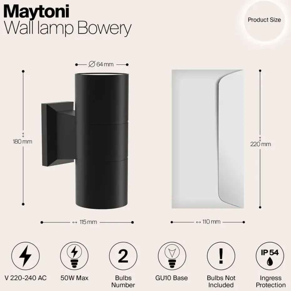 Duurzaam & Weerbestendig: Deze buitenmuurlamp heeft een IP54-classificatie, wat betekent dat hij bestand is tegen regen, stof en andere buitenomstandigheden. Hierdoor is hij perfect voor je tuin, huis, terras, oprit, pad, patio, balkon of veranda.Stijlvol & Veelzijdig Ontwerp: Met een slank zwart aluminium frame voegt deze lamp een moderne touch toe aan elke buitenruimte. De compacte afmetingen (hoogte: 18 cm, breedte: 11,5 cm, diameter: 6,4 cm) maken het een veelzijdige keuze voor verschillende locaties.Aanpasbare Verlichting: Vereist 2 GU10 gloeilampen (niet inbegrepen), waardoor je gloeilampen tot 50 watt kunt kiezen die passen bij je gewenste helderheid en kleurtemperatuur voor een gepersonaliseerde verlichtingservaring.Eenvoudige Installatie: Ontworpen voor eenvoudige installatie, wordt deze muurlamp geleverd met alle benodigde montagematerialen, waardoor het een probleemloze toevoeging is aan je buitendecoratie.Energiezuinig & Milieuvriendelijk: Compatibel met energiebesparende LED-lampen, helpt deze lamp het elektriciteitsverbruik te verminderen en je energierekening te verlagen, terwijl hij voldoende verlichting biedt voor je buitenruimtes.