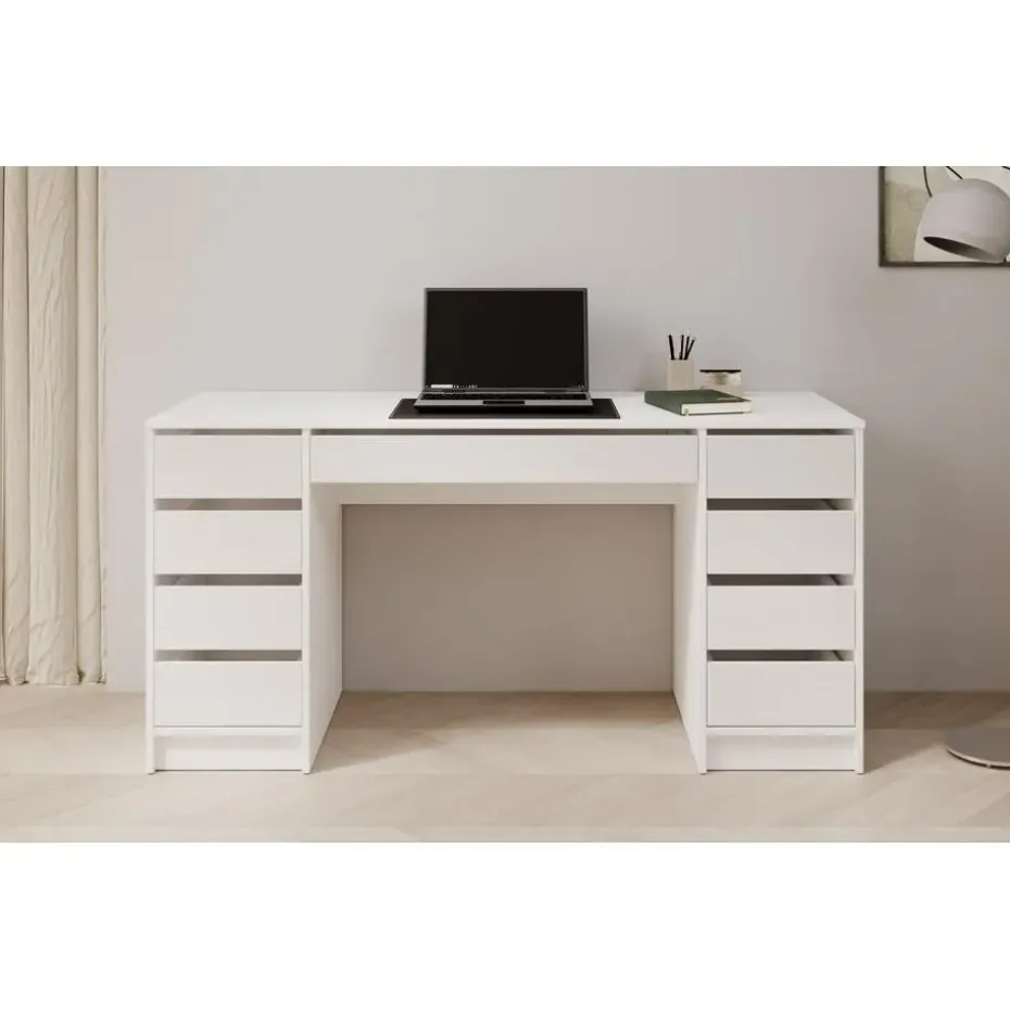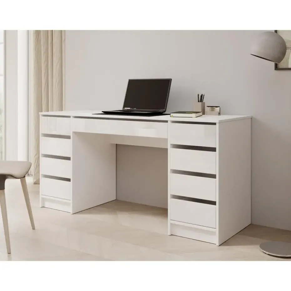 Bureau Avio beschikt over 9 greeploze lades. Deze zijn via de bovenzijde te openen. Het meubel is uitgevoerd in de kleur wit met hoogglans witte frontjes en heeft een moderne uitstraling. Het meubel wordt ongemonteerd geleverd. Je dient het dus met behulp van de bijgeleverde handleiding zelf in elkaar te zetten.