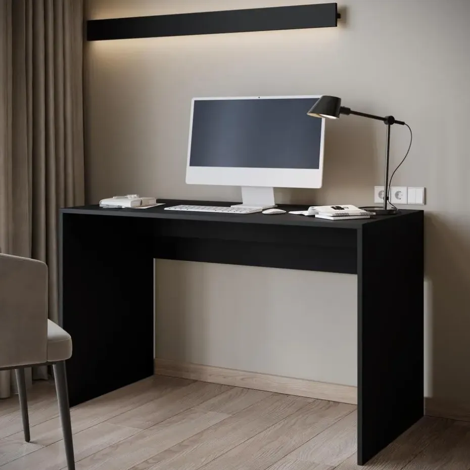 Bureau Nyon is een modern bureau in zwarte kleur. Het bureau beschikt over een brede klep om je kabels en bedrading weg te werken. Dit gaat via een stil sluitmechanisme. Het meubel wordt ongemonteerd geleverd. Je dient het dus met behulp van de bijgeleverde handleiding zelf in elkaar te zetten.