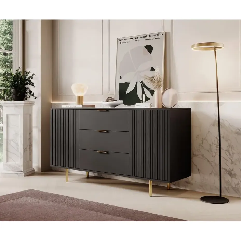Meubella - Dressoir Nicola - Mat zwart - 150 cm