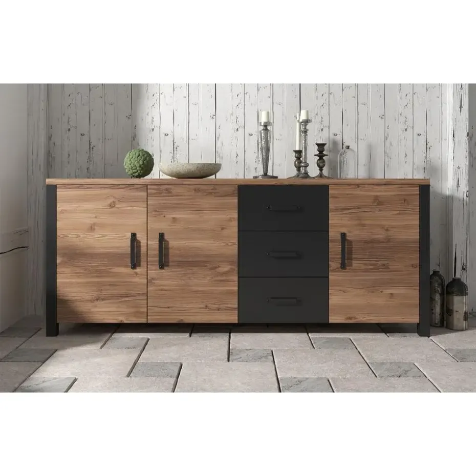 Dressior Olivia heeft 3 lades en 3 deuren. Deze zijn de openen met metalen handgrepen. Het meubel wordt ongemonteerd geleverd. Je dient het dus met behulp van de bijgeleverde handleiding zelf in elkaar te zetten.