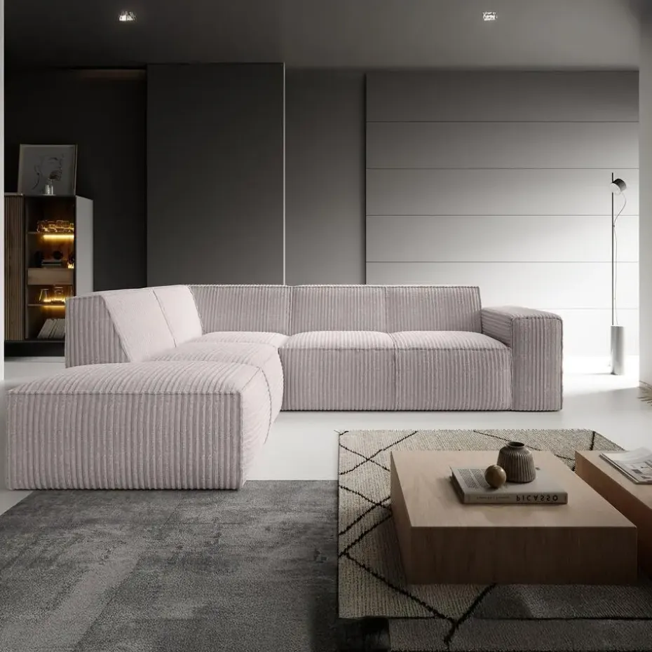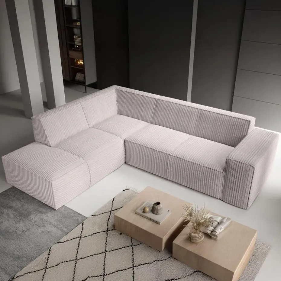 Hoekbank Monet is een hoekbank gemaakt van fluffy ribstof in beige kleur. Het is een L-vormige hoekbank geschikt voor 4 tot 5 personen. Beschikt over vaste zit- en rugkussens en een naar buiten gestikte naad op de randen. Het meubel wordt ongemonteerd geleverd. Je dient het dus met behulp van de bijgeleverde handleiding zelf in elkaar te zetten.