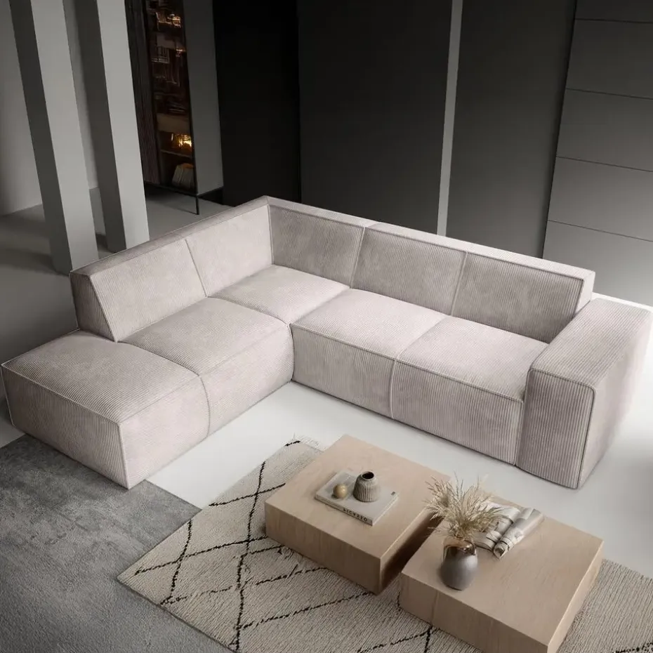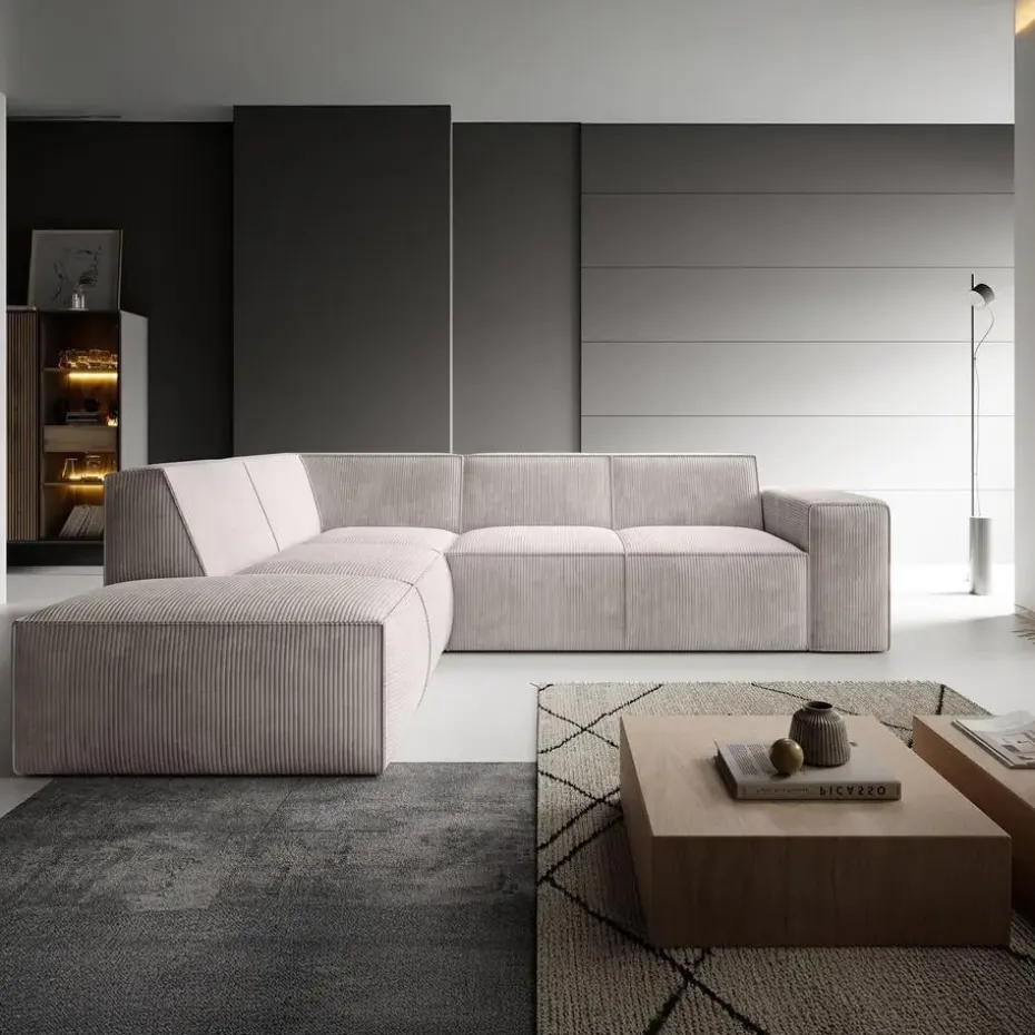 Hoekbank Monet is een hoekbank gemaakt van ribstof in beige kleur. Het is een L-vormige hoekbank geschikt voor 4 tot 5 personen. Beschikt over vaste zit- en rugkussens en een naar buiten gestikte naad op de randen. Het meubel wordt ongemonteerd geleverd. Je dient het dus met behulp van de bijgeleverde handleiding zelf in elkaar te zetten.