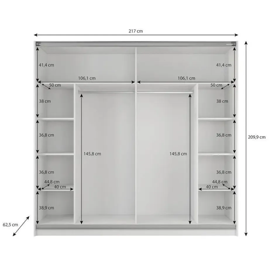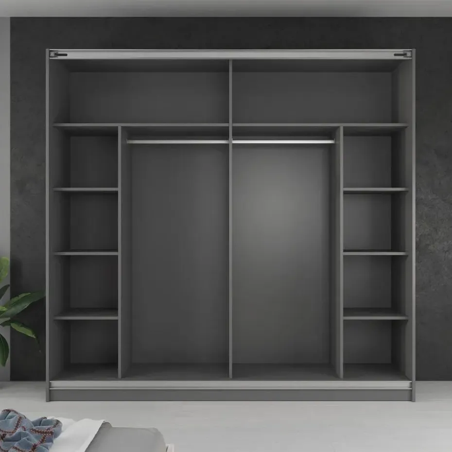 Kledingkast Samantha beschikt over 2 schuifdeuren. De binnenkant bestaat uit 2 kledingroedes en 10 opbergvakken Het meubel wordt ongemonteerd geleverd. Je dient het dus met behulp van de bijgeleverde handleiding zelf in elkaar te zetten.