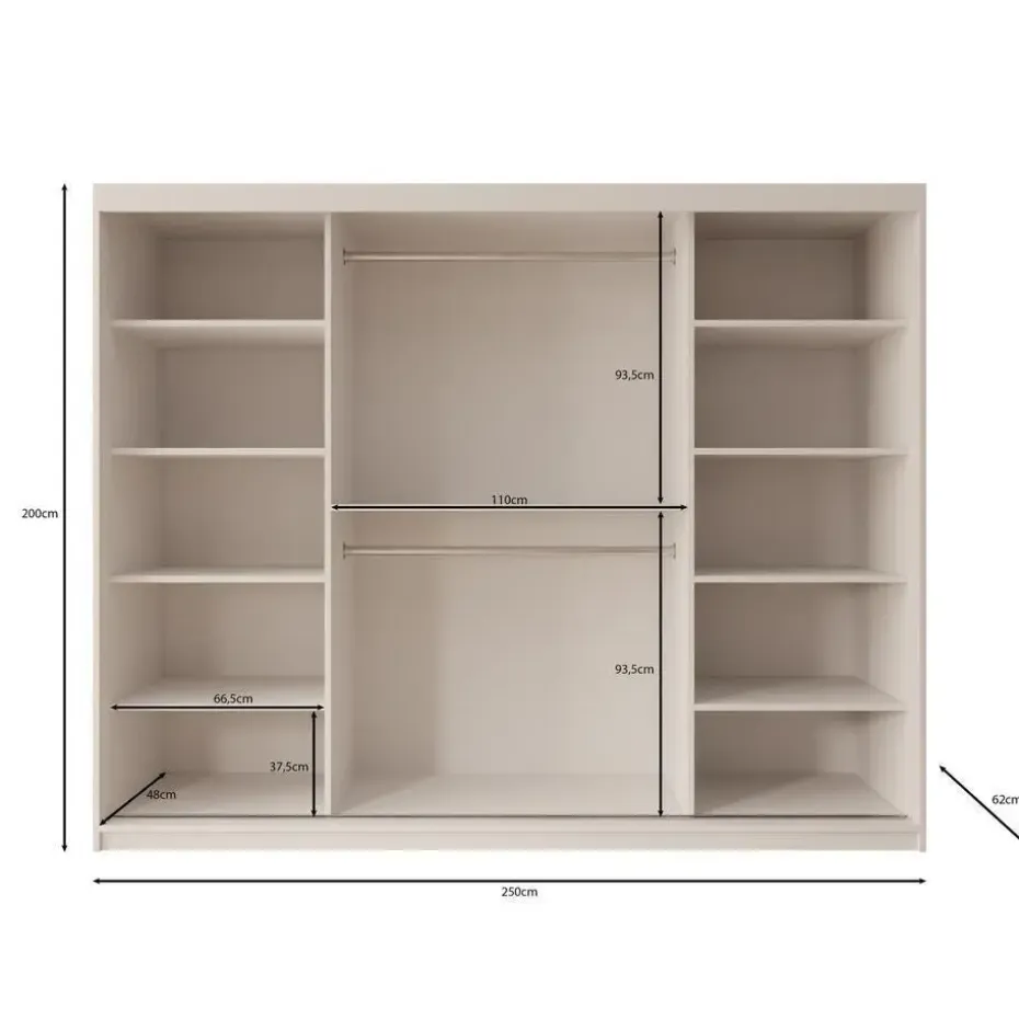 Meubella – Kledingkast Ulysses – Wit – 250 cm – Met spiegel
