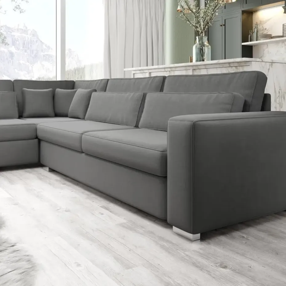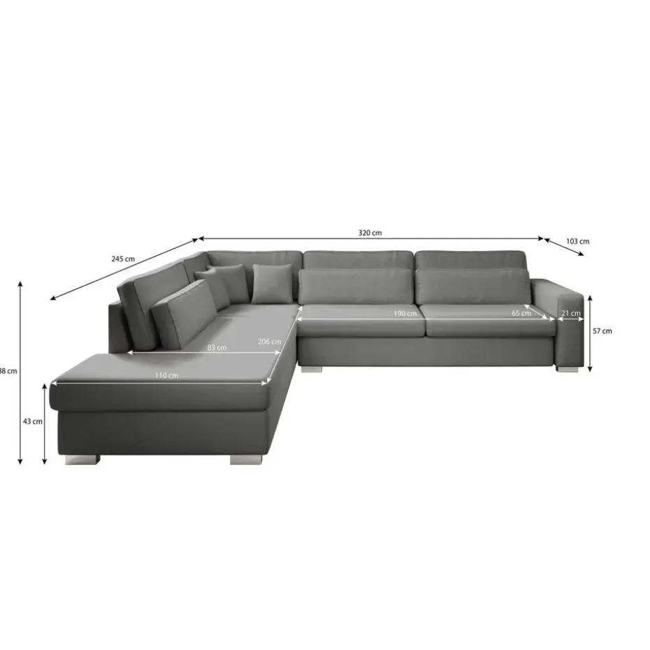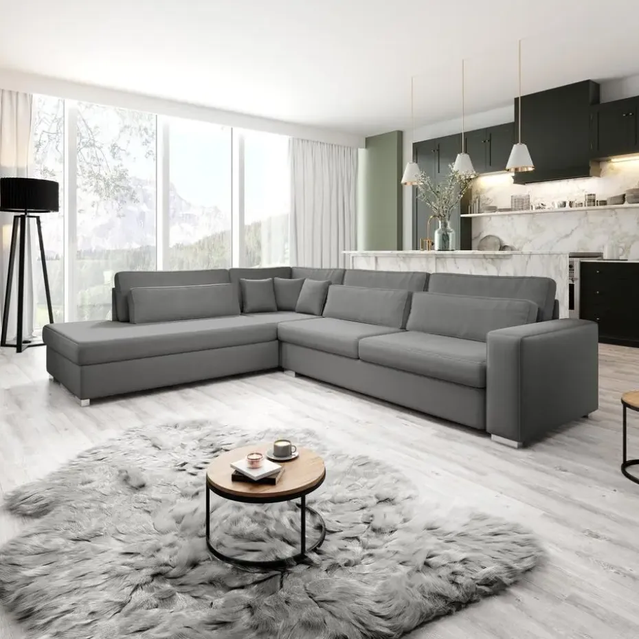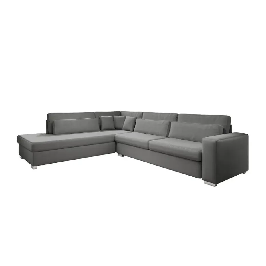 Hoekbank Kristina is bekleed met velvet in de kleur grijs. Het is een bank in L-vorm met de lounge links als je voor de bank staat. De bank heeft losse zit- en rugkussens en staat op kunststoffen pootjes. Inclusief alle weergegeven sierkussens. Het meubel wordt ongemonteerd geleverd. Je dient het dus met behulp van de bijgeleverde handleiding zelf in elkaar te zetten.