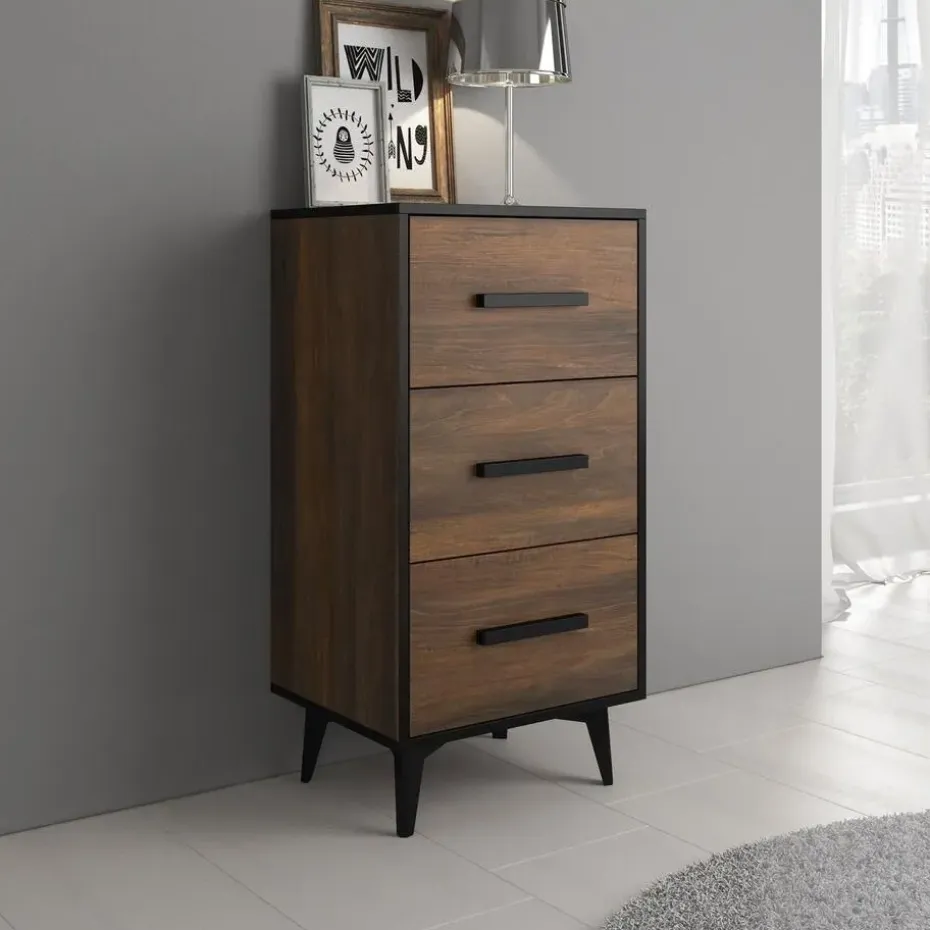 Ladekast Frey beschikt over 3 lades die te openen zijn met zwarte handgrepen. De kast staat op metalen poten. Het meubel wordt ongemonteerd geleverd. Je dient het dus met behulp van de bijgeleverde handleiding zelf in elkaar te zetten.