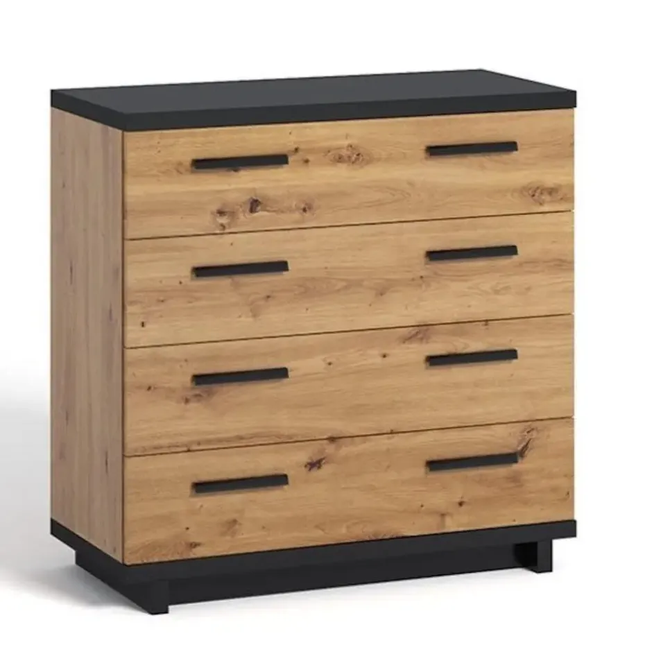 Ladekast Incala beschikt over 4 handige lades die te openen zijn met zwarte handgrepen. Het meubel heeft 2 handgrepen per lade. Het meubel wordt ongemonteerd geleverd. Je dient het dus met behulp van de bijgeleverde handleiding zelf in elkaar te zetten.
