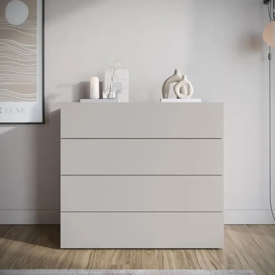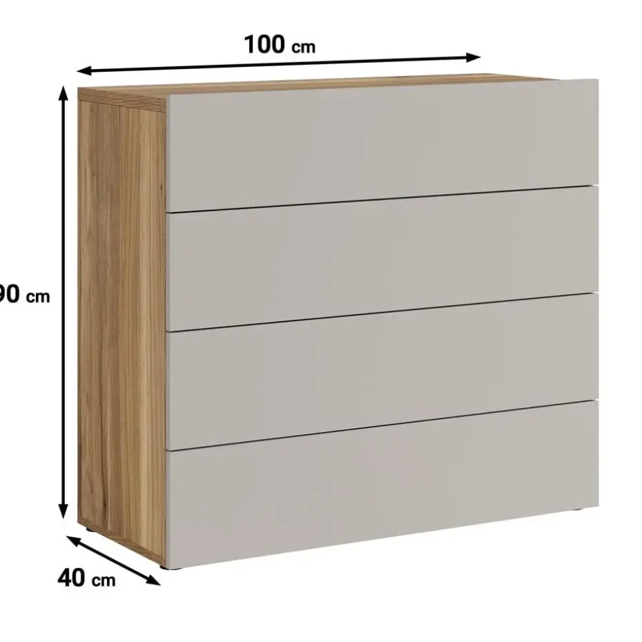 De voorkant van de lades van de Innocent zijn in beige, de rest van het meubel is uitgevoerd in een eiken kleur. De opbergkast beschikt over 4 lades. De kast is uitgevoerd in een moderne stijl. Het meubel wordt ongemonteerd geleverd. Je dient het dus met behulp van de bijgeleverde handleiding zelf in elkaar te zetten.