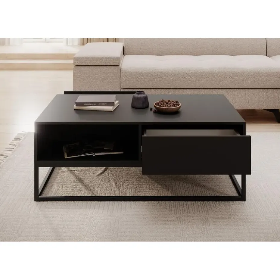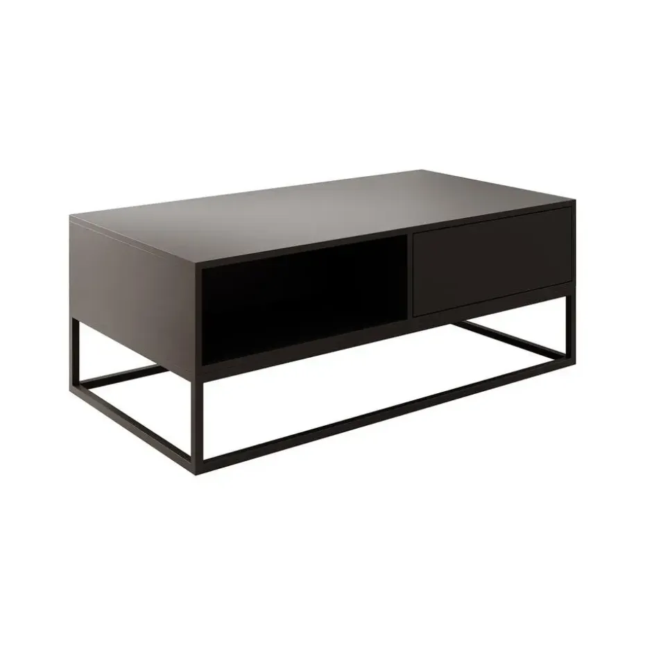 De Delta is een salontafel in een modern / industriële stijl. De tafel beschikt over 2 opbergvakken en 2 lades die te openen zijn met het push-to-open systeem. De Delta staat op metalen poten. Het meubel wordt ongemonteerd geleverd. Je dient het dus met behulp van de bijgeleverde handleiding zelf in elkaar te zetten.