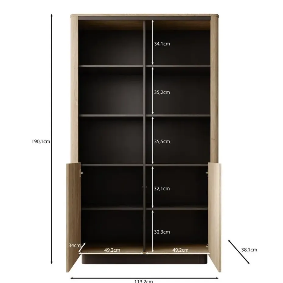 Boekenkast Taywan beschikt over 2 deuren die openen met push to open systeem. Achter de deuren zitten 4 opbergvakken. Hierboven zijn nog 6 open vakken te vinden. Het meubel is uitgevoerd in een eiken kleur. Het meubel wordt ongemonteerd geleverd. Je dient het dus met behulp van de bijgeleverde handleiding zelf in elkaar te zetten.