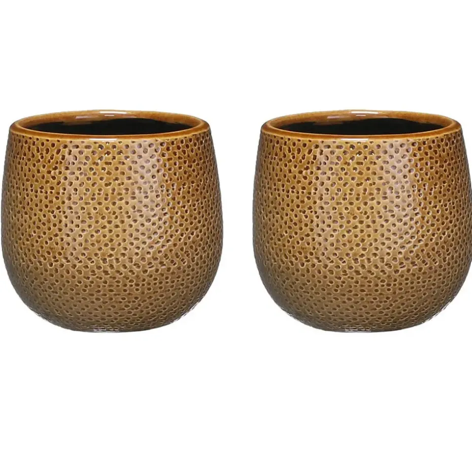 Bloempot in de kleur okergeel van een sjiek geribbeld motief keramiek voor een kamerplant H12 x D14 cm. Deze ronde bloempot uit de Gabriel serie met schitterende afwerking geeft een boost aan uw interieur. Gemaakt van terracotta/keramiek. Diameter: 14 cm. Hoogte: 12 cm.
