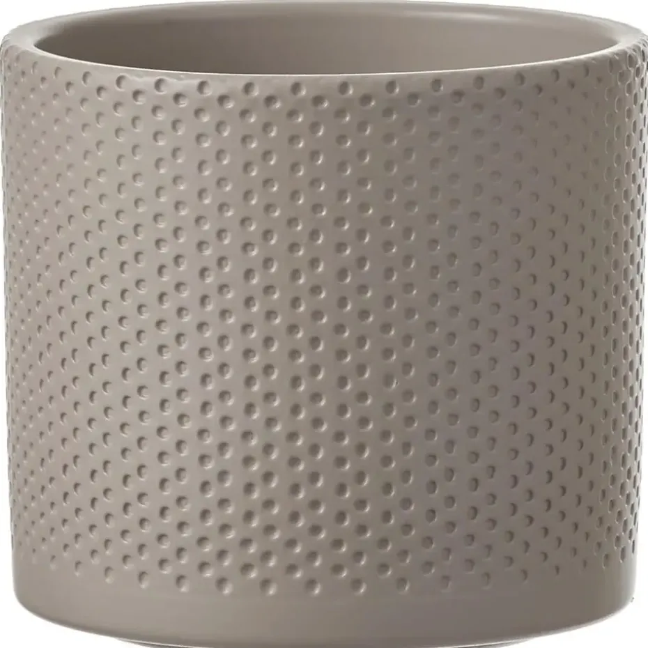 Bloempot in de kleur relief taupe gemaakt van keramiek voor een kamerplant – D13 x H12 cm. Deze ronde bloempot uit de Era serie met mooie relief afwerking is een bloempot/plantenpot basic voor in elke huiskamer. Gemaakt van terracotta/keramiek. Binnen gebruik. Diameter: 13 cm. Hoogte: 12 cm.